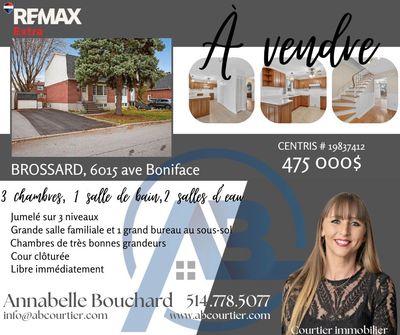 Chambres ayant de belles grandeurs, Grande salle familiale et bureau au sous-sol, Cour Clôturée
